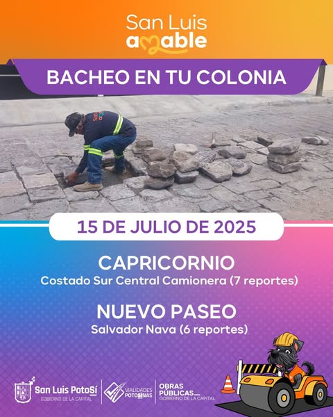 El Gobierno de la Capital reitera que estamos trabajando todos los días para cuidar las calles y avenidas de San Luis Potosí y responder de manera inmediata a cada reporte ciudadano, porque una ciudad en movimiento necesita vialidades seguras y funcionales para todas y todos.